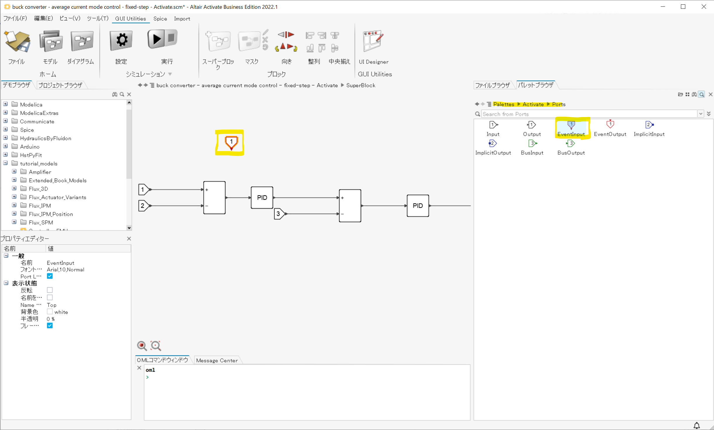 EventInputはActivateのパレットブラウザ→Activate→Portsの中にあります。