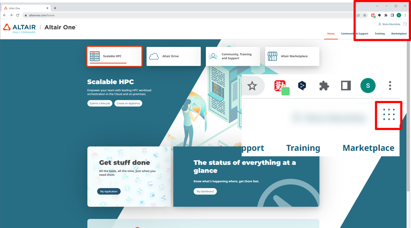 2.この画面が表示される場合は右上アカウント名の横の9点部分をクリックしてください。