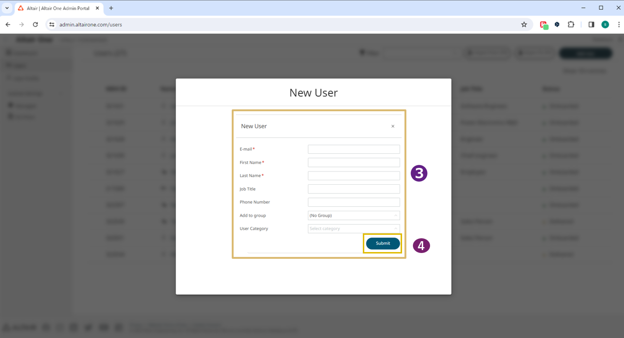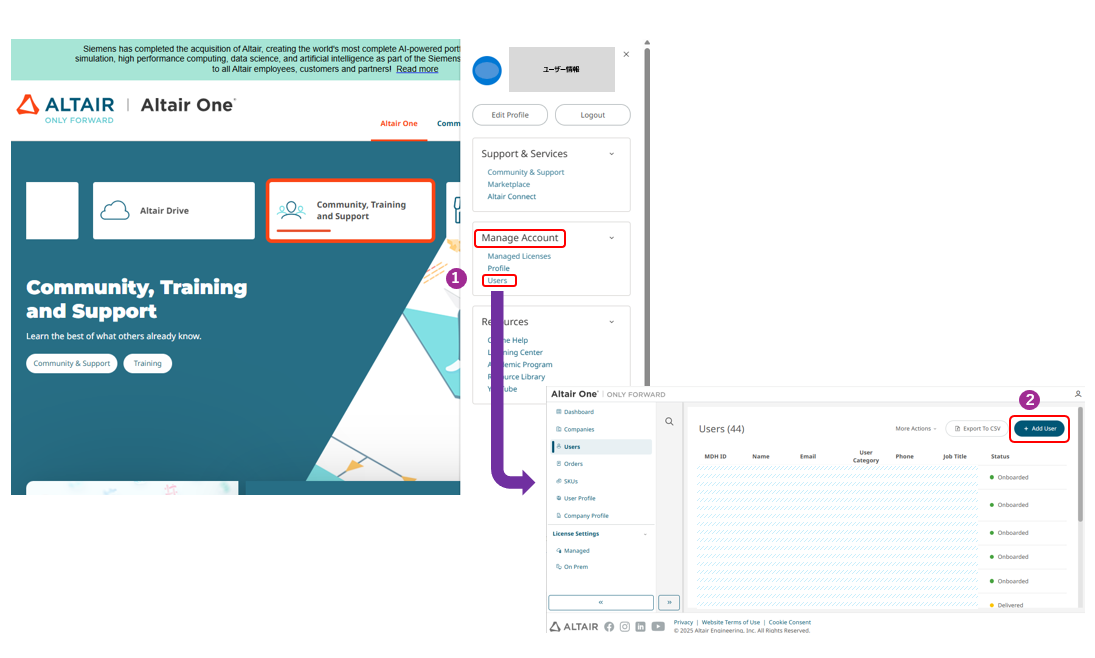 1.Altair OneのUsersからユーザ追加をおこないます。