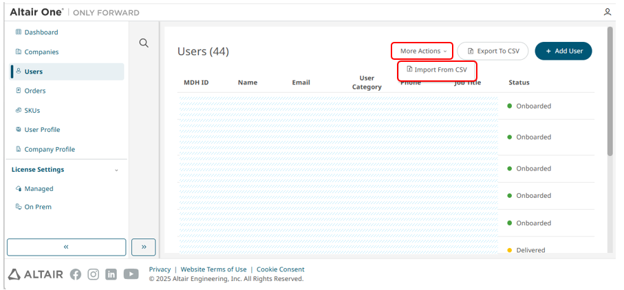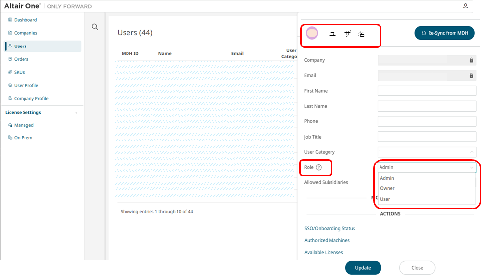 3.Altair OneのUsersから設定します。